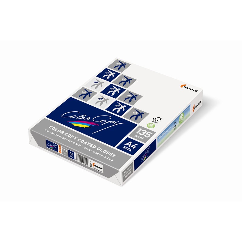 Глянцевая бумага Color Copy Coated Glossy формата А3 с гладкой поверхностью, высокой степени белизны 141% предназначена для печати на лазерных принтерах (черно-белых и цветных), на цветных копировальных аппаратах, на цифровых печатных устройствах. Плотность бумаги составляет 170 г/кв.м. Пачка содержит 250 листов.