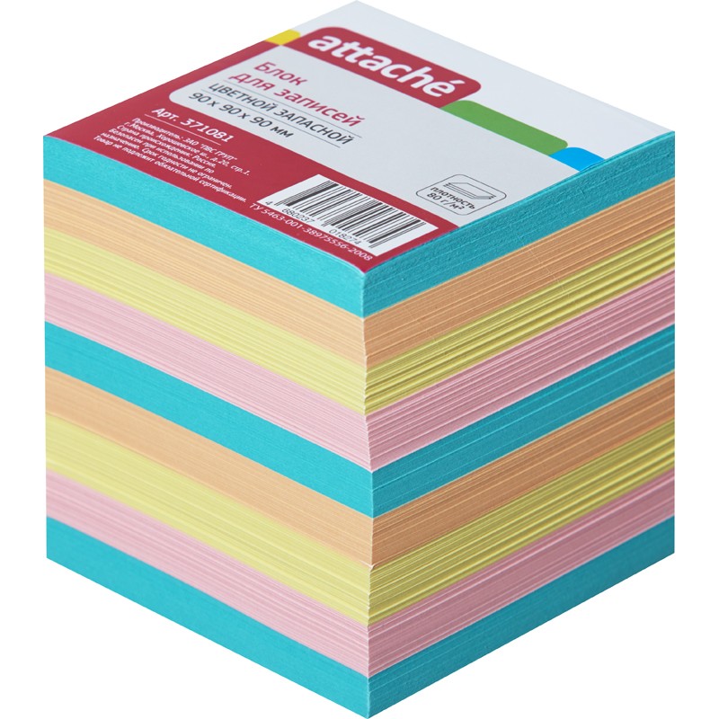 Название торговой марки Attache Торговая марка Attache Размер изделия 90x90x90 мм Страна происхождения Россия Схема вложения 12 Цвет бумаги разноцветные Белизна нет % Артикул 371081 -