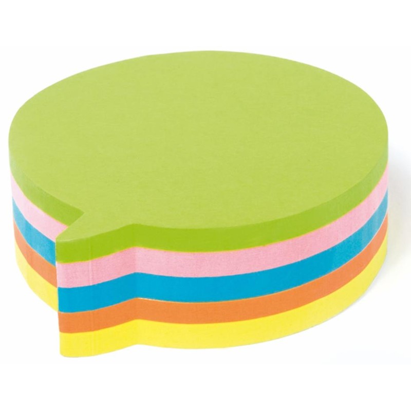 Блок-кубик фигурный Kores с клейким краем выполнен в форме диалогового окна диаметром 70 мм, пять цветов. В упаковке 250 листов, плотность бумаги — 70 г/кв.м. Клейкий слой составляет 27 Н/м.