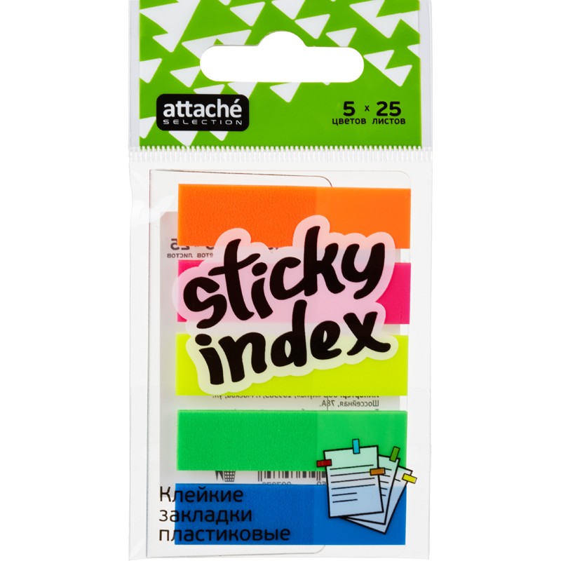 Название торговой марки Attache Selection Торговая марка Attache Selection Страна происхождения Россия Схема вложения 24 Клейкость 2,0 кг/м Количество цветов 5 Материал закладки пластик Количество закладок в блоке 25 шт. Размер, мм 45x12 Тон закладок неоновые Артикул 383728 -