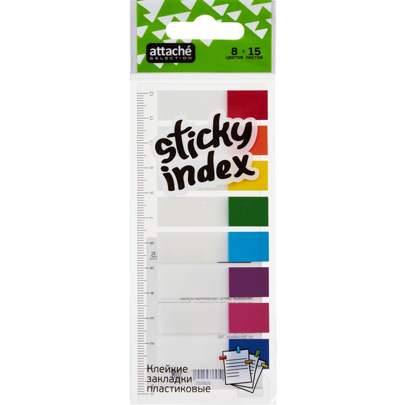 | Клейкие закладки пласт. 8цв.по 15л. 45ммх12 Attache Selection |