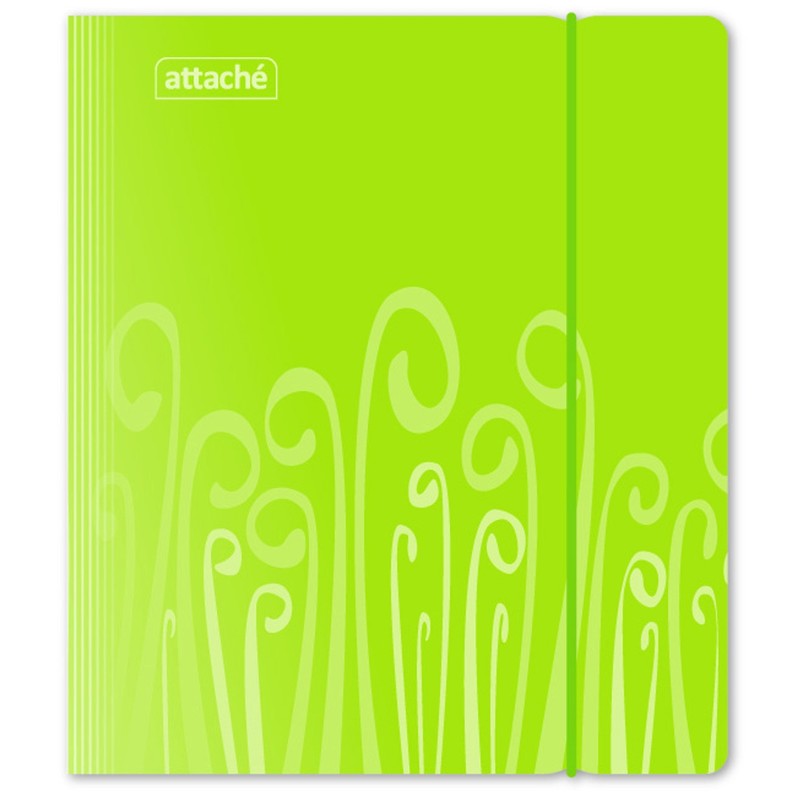Бизнес-тетрадь Attache Fantasy. Модель салатового цвета, в твердой обложке из износоустойчивого пластика с приятной текстурой, комплектуется съемной линейкой-закладкой и двумя съемными цветными разделителями. Блок бизнес-тетради состоит из 140 листов белой офсетной бумаги формата А5, разлинованных в клетку. На страницах имеются поля и разметка для дополнительной информации. Бизнес-тетрадь оборудована креплением в виде серебристой спирали увеличенного диаметра.