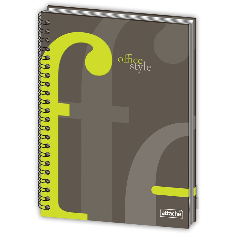 Бизнес-тетрадь Attache формата А5 96 листов в твердом переплете серого цвета. Обложка из высококачественного картона с матовой ламинацией. Украшена яркими буквами, покрытыми УФ-лаком, крепление — спираль. Размер внутреннего блока — 148×205 мм. Бумага офсет 60 г/кв.м. Тетрадь поставляется в термоусадочной пленке.