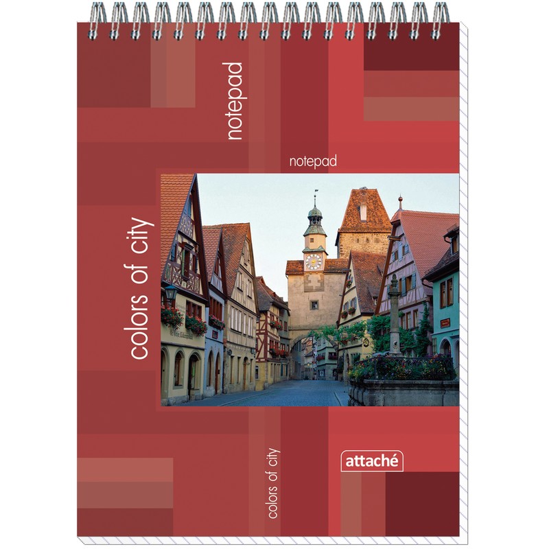 Блокнот Attache в твердой обложке, выполненной из ламинированного картона. Внутренний блок, закрепленный на металлической спирали, состоит из 50 листов. Белая бумага с полями разлинована в клетку. Блокнот имеет формат А5, размер 148×210 мм.