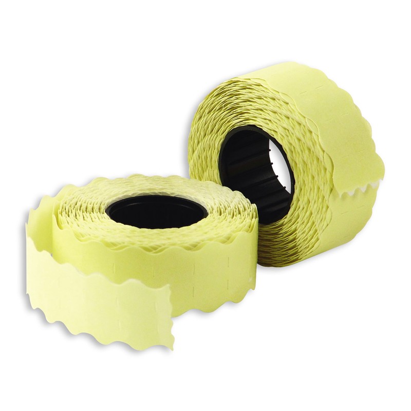 Лента белого цвета с этикетками типа «волна» размером 12×22 мм предназначена для этикет-пистолетов. Этикетки вмещают до двух строк символов. Поставляется по 200 рулонов в упаковке, один рулон состоит из 800 этикеток.