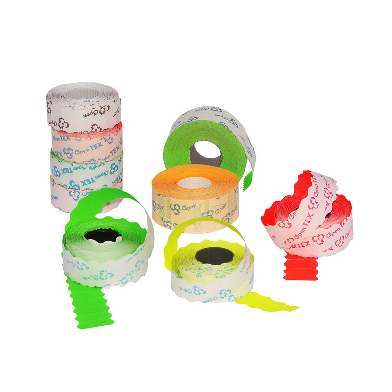 Лента белого цвета с этикетками прямоугольной формы размером 28×29 мм предназначена для этикет-пистолета Open T117. Этикетки вмещают три строки символов. Поставляется по 10 рулонов в упаковке, один рулон состоит из 700 этикеток.