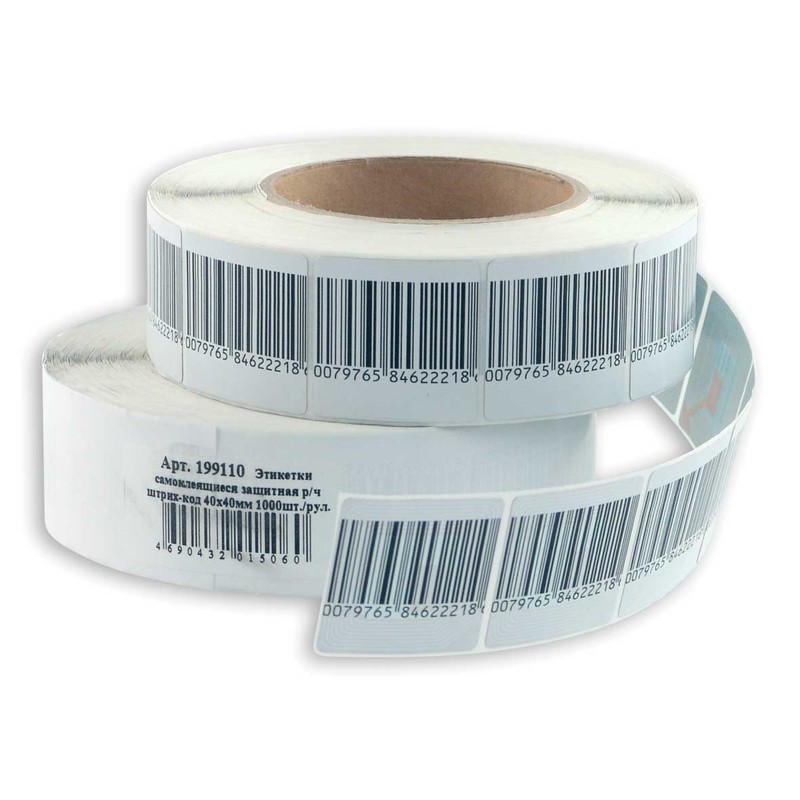 | Этикетки самоклеящиеся защитная р/ч штрих-код 40х40мм 1000шт/рул 20рул/уп |