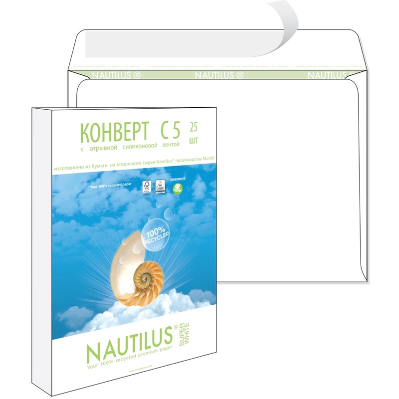 | Конверт Nautilus,ЭКО, С5(162х229мм), стрип,80г, 25шт/уп |