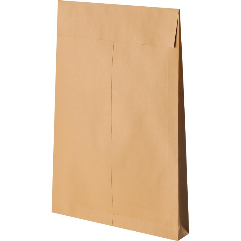Пакет почтовый Gusset размером 280×400×40 мм выполнен из крафт-бумаги плотностью 140 г/кв.м, имеет клеевое нанесение типа стрип (отрывная силиконовая лента). Боковое расширение — 40 мм.