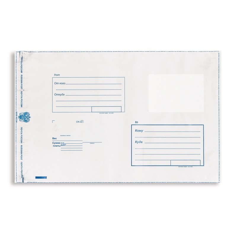 Почтовый пакет формата С4 (размер 229×324 мм) изготовлен из трехслойного непрозрачного полиэтилена толщиной 70 мкм. Предназначен для упаковки всех видов почтовых отправлений — писем, бандеролей, мелких посылок (простых, заказных, с объявленной ценностью). Имеет почтовый подсказ «Куда-Кому», снабжен отрывной клейкой лентой. Поверхности определенных зон пакета обеспечивают качество наносимых шариковой ручкой надписей, оттисков штемпелей и не допускают их истирания при обработке и транспортировке.