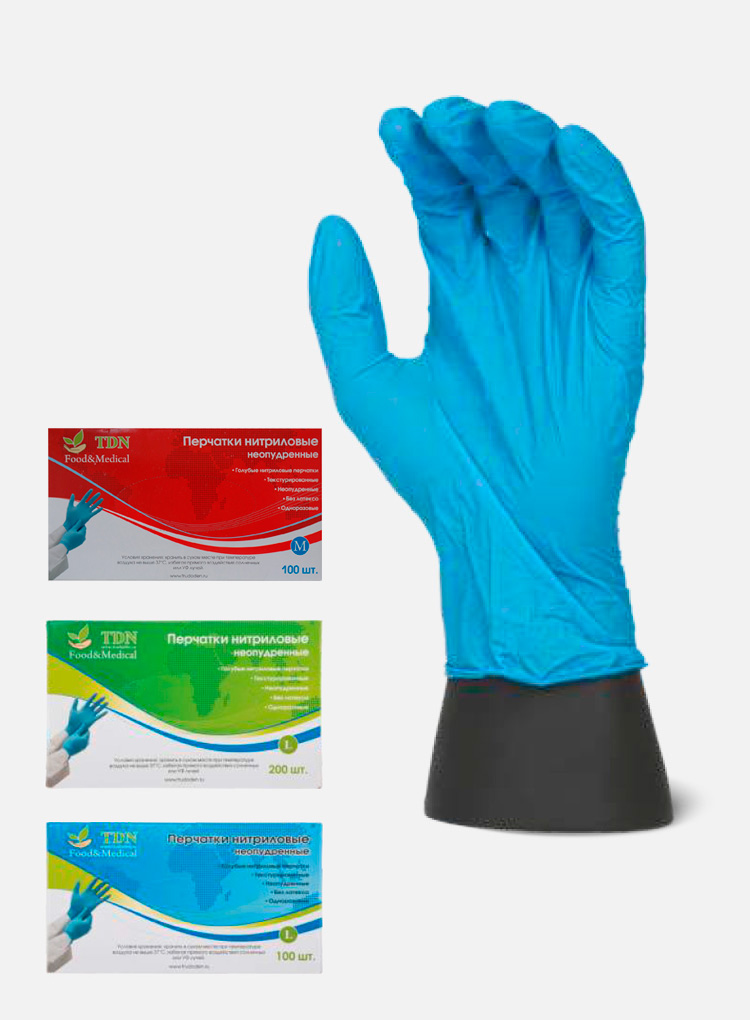 Перчатки медицинские смотровые нитриловые, неопудренные, гипоаллергенные, нестерильные. Текстурированная поверхность по всей длине пальцев, цвет голубой, неанатомическая форма (без разделения на правую и левую руки), манжета с валиком. Исключает возможность возникновения раздражения у людей, чувствительных к латексу. Коэффициент AQL -1,5. |
