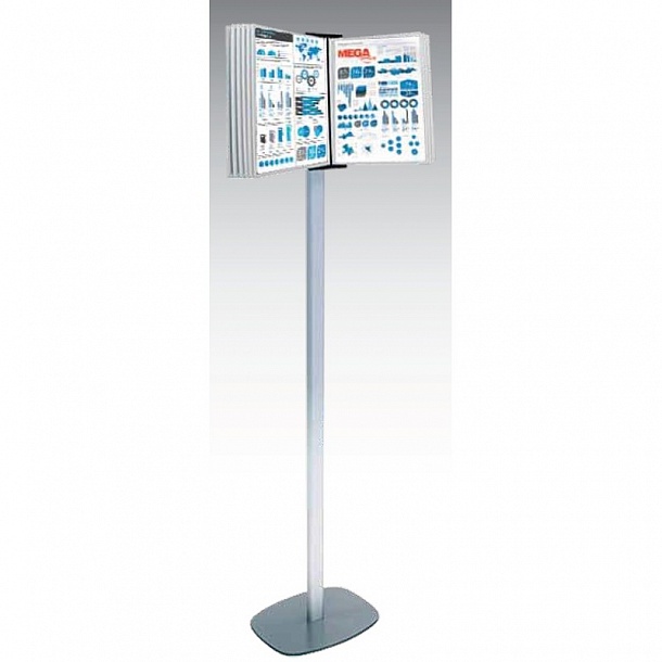 Напольная демонстрационная система Mega Office «Мачта-2» серого цвета имеет устойчивое основание весом 3,58 кг. Позволяет удобно представлять информацию на уровне человеческого роста. В каждой из десяти демопанелей можно разместить по два листа формата А4. Панели изготовлены из прочного прозрачного материала с антибликовым покрытием, надежно защищают документы от внешних воздействий, обеспечивают качественную презентацию. Демосистема легко собирается без инструментов. Высота стойки составляет 150 см. Размер основания 32х40 см