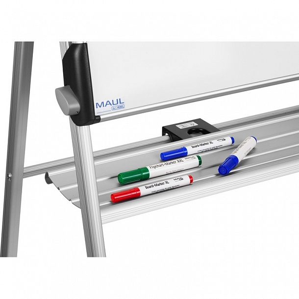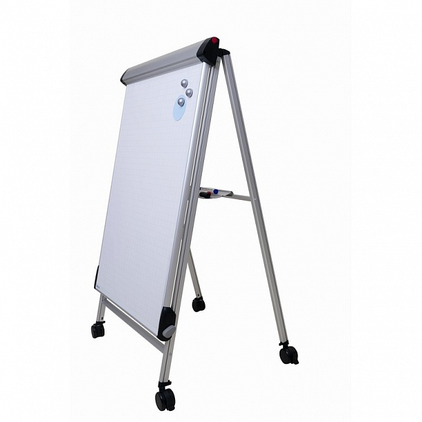 Флипчарт магнитно-маркерный на треноге. Выдвижная планка крепится с левой или правой стороны. Предназначен для работ сухого стирания и размещения информации с помощью магнитов. Рамка из алюминия с круглыми боковыми заглушками. Держатель для блока бумаги. Полочка для маркеров. Размеры: 69х96 см. Высота регулируется в пределах от 125 до 200 см. Тренога раздвигается на 40 см. По поверхности флипчарта рекомендуется писать маркерами для досок (см. вкладку расходные материалы). По поверхности блока бумаги рекомендуется писать маркерами для флипчартов (см. вкладку расходные материалы). Страна производитель - Германия. Гарантия 3 года. Флипчарт поставляется без колес, но есть возможность их прикрепления.