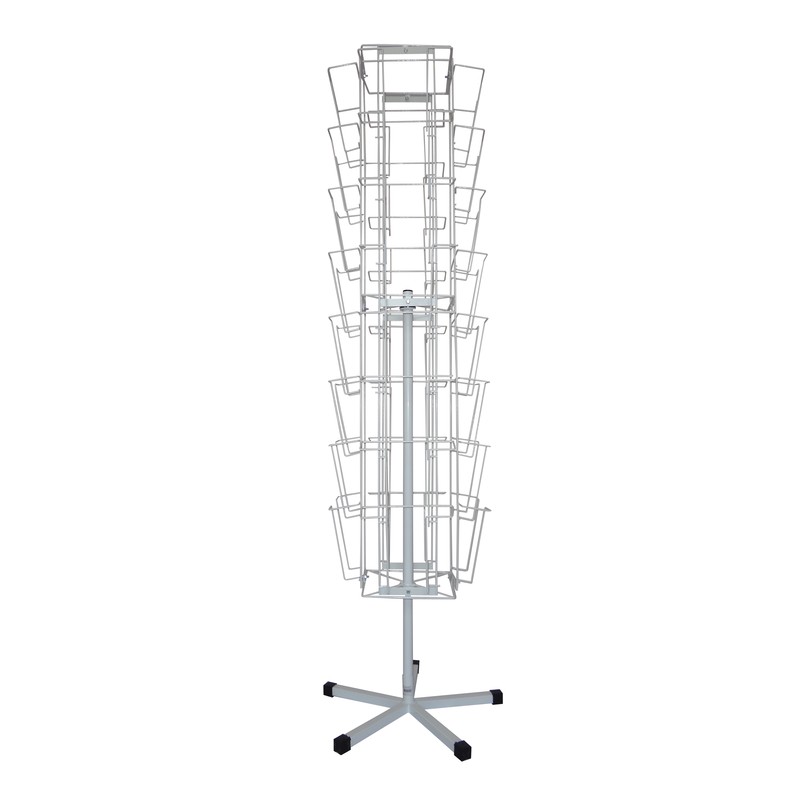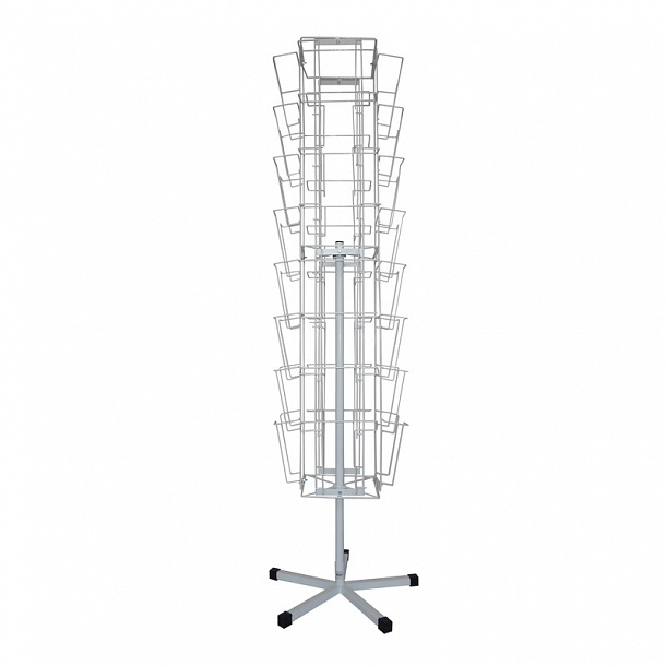 Стойка металлическая, вращающаяся (подшипник), разборная, 32 кармана А4.Глубина кармана 27мм. Габариты 1500х570х190. Без колёсных опор. Цвет белый. Материал: металл;