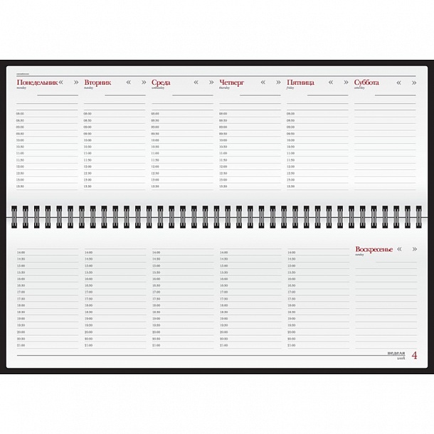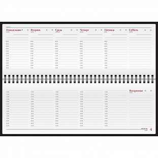 Планинг коллекции Ideal, Твердая обложка выполнена из итальянского переплетного материала закреплена на металлическом гребне. Блок из офсетной бумаги высокой плотности снабжен дополнительной справочной информацией.