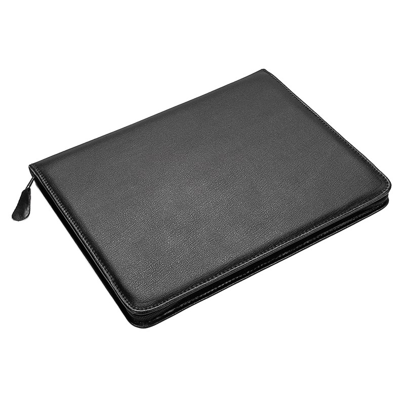 Материал - искусственная кожа. Закрывается на молнию. Внутри карманы для документов формата А4, а также система карманов для визиток и других мелких документов.