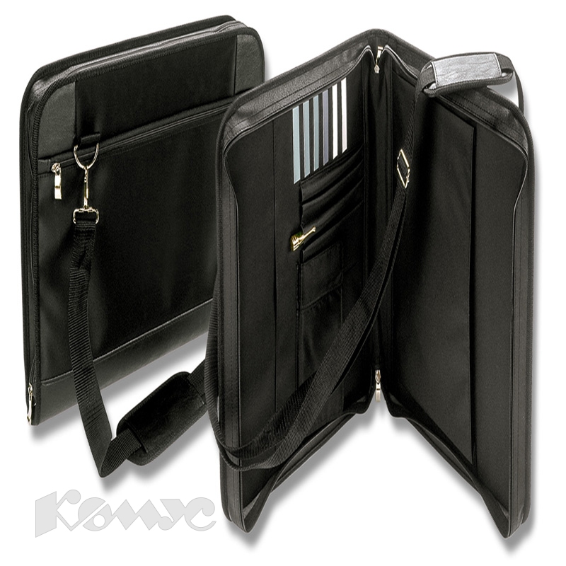 | Папка из кож/зам ВИКТОРИЯ N 213 вставки нейлон, с ремнем,черная Россия |