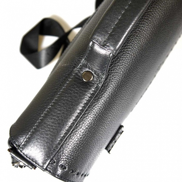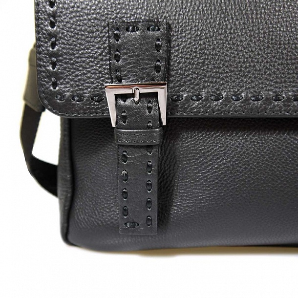 Портфель закрывается двумя защелкивающимися замками с регулируемым положением пряжки. Снабжен текстильным ремнем. Снаружи на лицевой стороне находится карман размером 34×18,5 см, на обратной стороне — карман размером 34×18 см. Основное отделение закрывается на молнию. Внутри: на передней стенке — карман для мобильного телефона, карман для паспорта и две петли для ручек; на противоположной стенке — карман размером 25×14 см на молнии, два кожаных кармана для пластиковых карт.