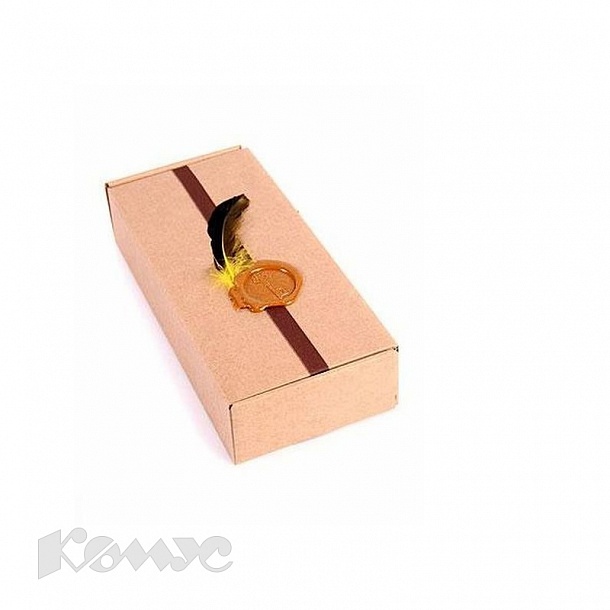 | Подарочная упаковка Коробка микрогофра лента, перо и сургуч 26х11х5см, 002-6 |