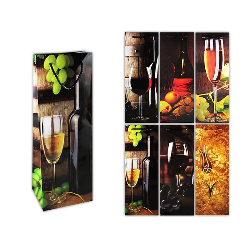 Подарочный пакет под бутылку изготовлен из бумаги, дно укреплено картоном, размеры — 36×13×8,5 см. Декорирован ярким изображением (дизайн в ассортименте). Предусмотрены ручки для удобной переноски. Презент в такой упаковке будет эффектным и запоминающимся.