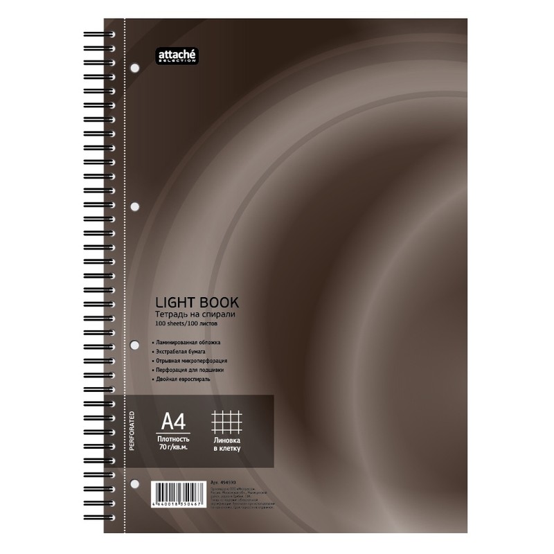 Бизнес-тетрадь LightBook формата А4 для офиса и учебных заведений. Обложки с привлекательным дизайном изготовлены из ламинированного картона. В тетрадных блоках применена микроперфорация для ровного и удобного отрывания листов. В тетрадях формата А4 при этом присутствует перфорация для подшивки вырванных листов в любую папку. Блок включает 100 листов высококачественной офсетной бумаги плотностью 70 г/кв.м, тип крепления — спираль. Листы в клетку, белизна 100%.