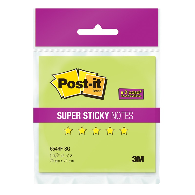 | Блок-кубик Post-it Super Sticky 654RF-SG,76х76 неон зеленый, 45 л. |