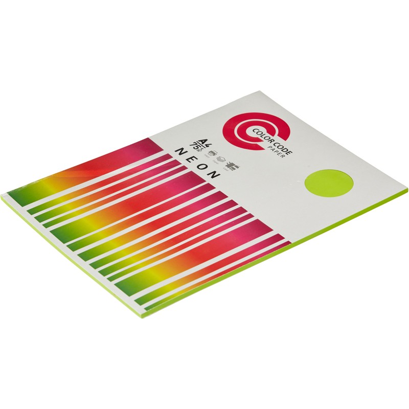 Название торговой марки ColorCode Торговая марка ColorCode Страна происхождения Индонезия Формат листов А4 Плотность бумаги 75 г/кв.м Схема вложения 1 Цвет бумаги зеленый Листов в пачке 100 лист Цветовая гамма Неон Артикул 473361 -