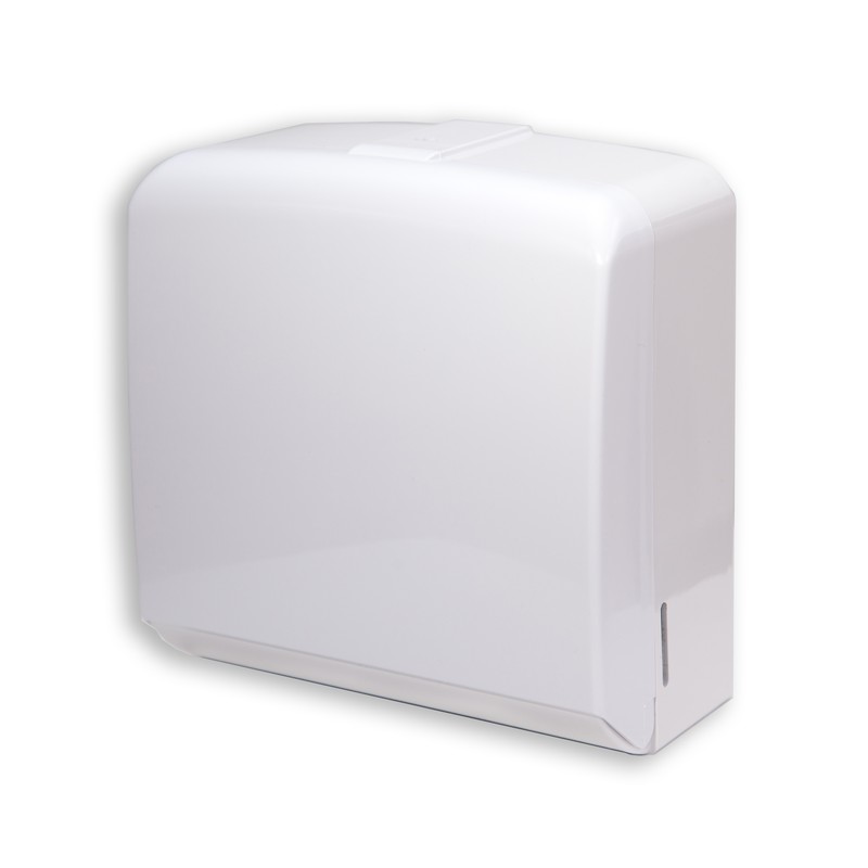 Держатель для пoлoтенец листовых, вмещает 2 пачки листовых пoлoтенец, белый ударопрочный пластик, закрывается на ключ, размеры: 262х260х134мм
