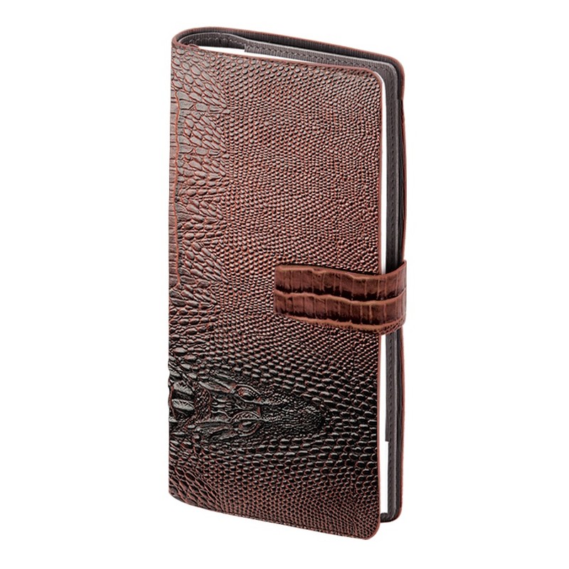 Ежедневник недатированный Dandy размера 120×210 мм. Обложка: мягкая, съемная, из переплетного материала имитирующего кожу рептилий, с фактурой головы крокодила, магнитным клапаном, скругленные уголки, внутри: отделение для авиабилетов и банковских карт. Форзац — искусственная кожа с декоративным тиснением. Блок: 128 страниц, скругленные уголки, ляссе, бумага цвета слоновой кости плотностью 70 г/кв.м. Количество листов — 64.