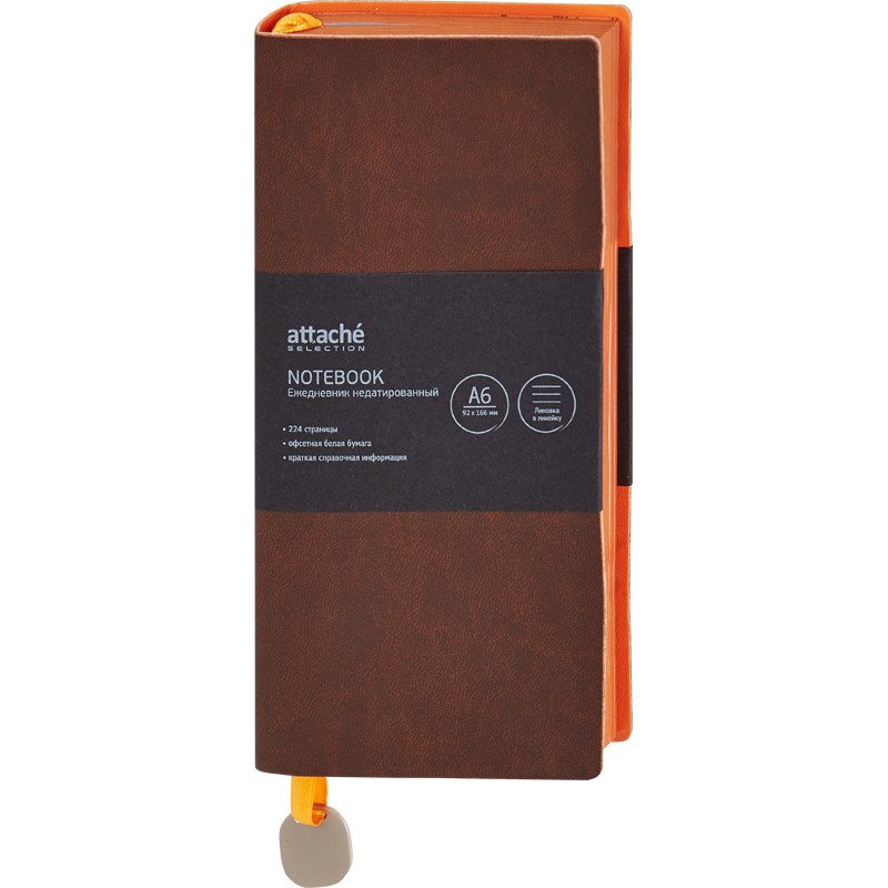 Ежедневник недатированный Attache Genua формата А6, размер 92×166 мм. Мягкая гибкая обложка из классического переплетного материала — высококачественной искусственной кожи контрастных цветов. Недатированный блок изготовлен из белой бумаги. Двойная шелковая
