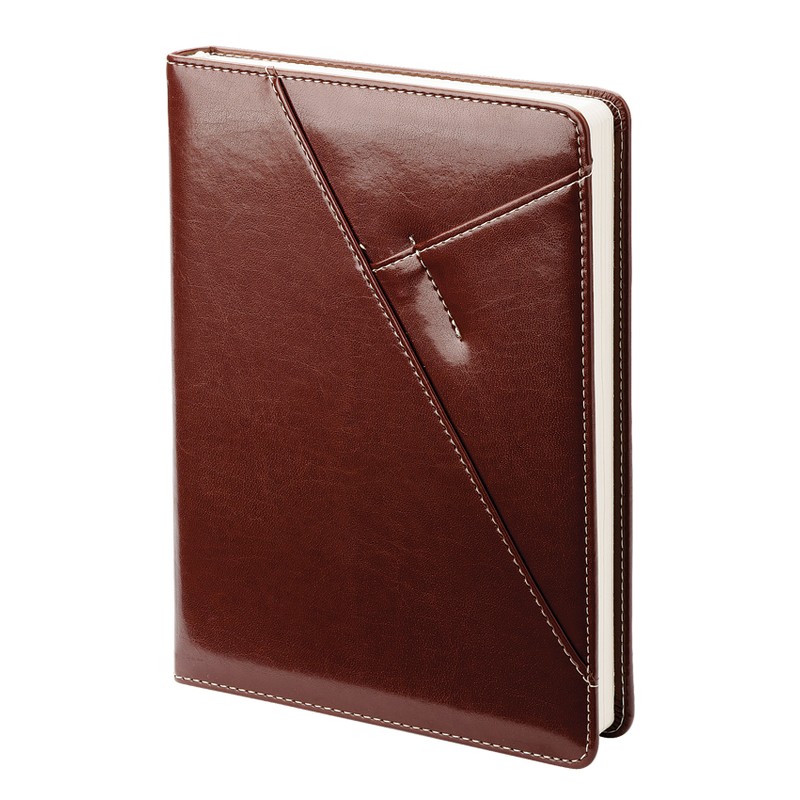 Ежедневник недатированный Portland формата А5, размер 150×210 мм. Тип обложки — твердый с мягкостью, тонкое ляссе, сложная прострочка, отделение под ручку. Количество листов — 160.