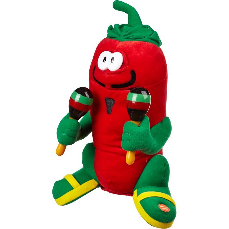 Перченок Гринго исполняет задорную песню «Кукарача» для своей возлюбленной. Во время исполнения он стучит маракасами, открывает рот синхронно словам песни и покачивается влево и вправо в такт музыке. Перченок выглядит очень ярко и красочно. Станет приятным презентом для женщин. Размер — 21×25×37 см. Работает от трех батареек АА (входят в комплект).