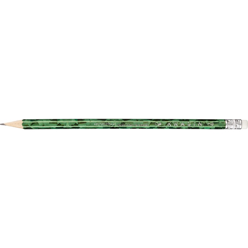 | Карандаш чернографитный Сияние с ластиком, НВ, шестигранный, зеленый голограф.корпус |