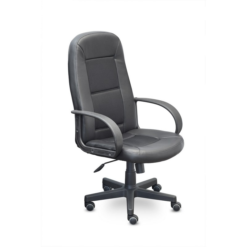 Кресло для руководителя эконом-сегмента. Обивка - искусственная кожа/ткань. Подлокотники и крестовина выполнены из пластика.