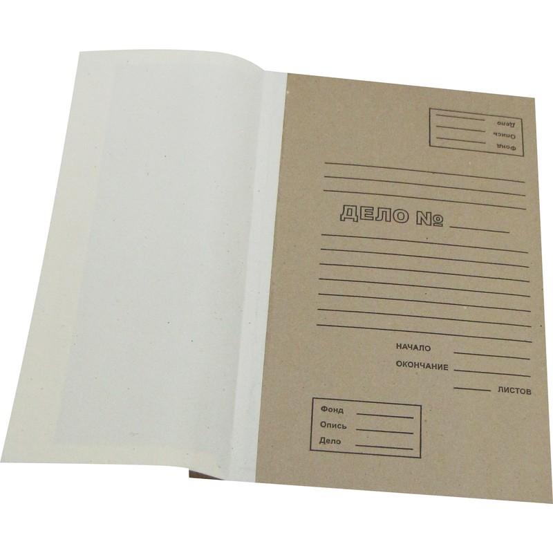 Папка для переплета изготовлена из переплетного картона бежевого цвета. Предназначена для сшивания документов. Корешок — из коленкора. Максимальная толщина дела составляет 40 мм (около 350 листов стандартной плотности). Внешний размер: 305×42×216 мм. Внутренний размер: 305×40×215 мм.