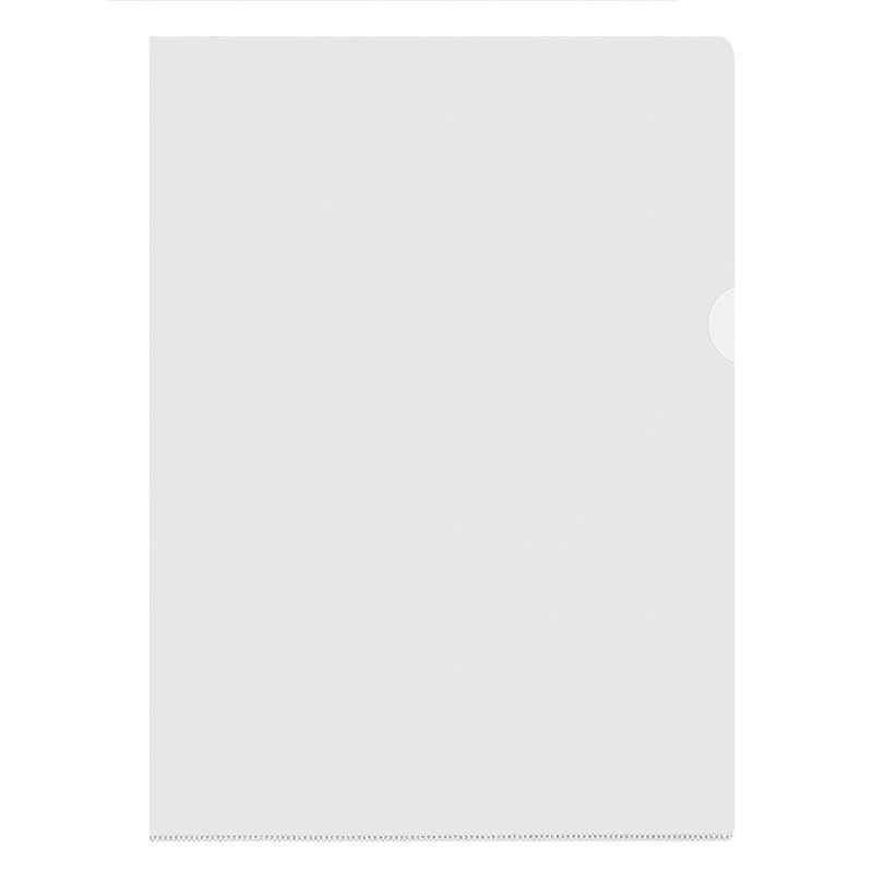 Папка-уголок глянцевая, без рельефа формата А4 изготовлена из мягкой полипропиленовой пленки. Толщина пленки — 100 мкм. Папка вмещает до 40 листов стандартной плотности. В упаковке 10 штук.