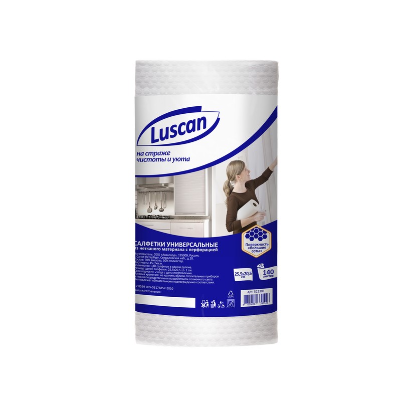 | Салфетки Luscan универсальные в рулоне, 25,5х20.5см, 45 г/м2, 140шт. |