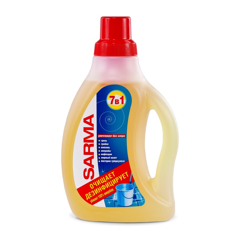 Средство Sarma (750 мл) предназначено для мытья и дезинфекции всех видов полов — плитки, ламината, деревянных, окрашенных, а также других моющихся поверхностей. Не раздражает кожу рук. Обладает дезинфицирующим эффектом. Удаляет 100% микробов и загрязнений. Может использоваться в разбавленном и в концентрированном виде. При использовании разбавленным нет необходимости споласкивать и вытирать насухо. Оставляет приятный запах сочного лимона.