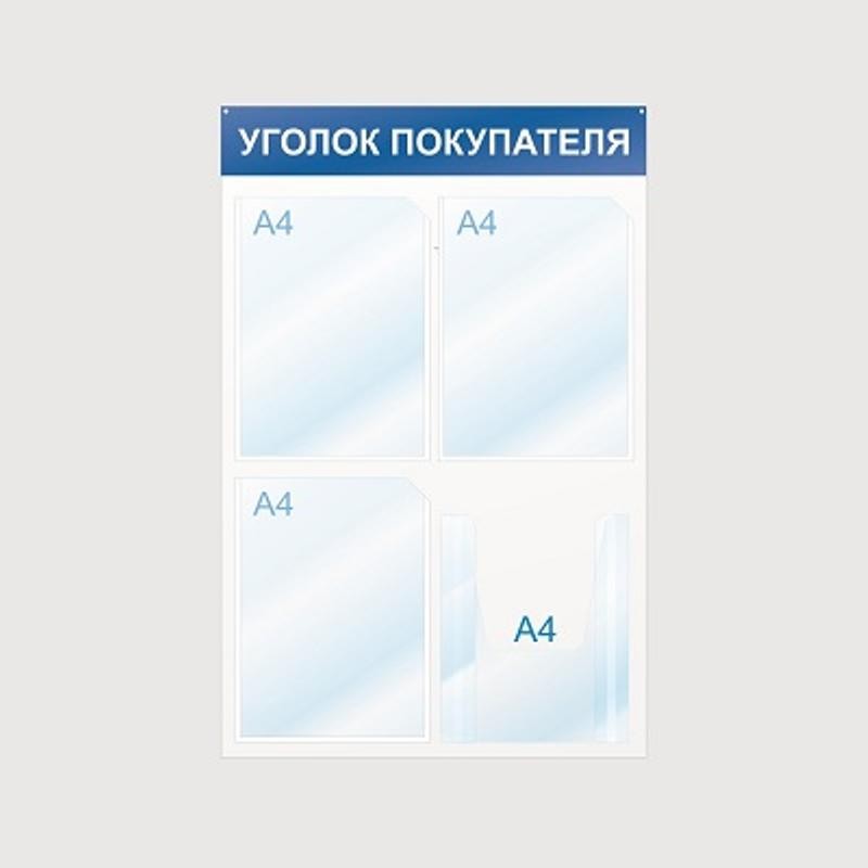 | Стенд информационный Уголок покупателя, 4 отд., 500х750, синий, настенный |