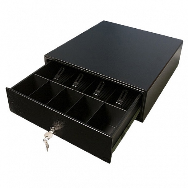 Денежный ящик "ШТРИХ-midiCD" чёрный. Цельнометаллический электромеханический денежный ящик с уникальным замком среднего размера. Денежный ящик "ШТРИХ-midiCD электромеханический" является аналогом популярного компактного денежного ящика "ШТРИХ-НРС-13S" , и идеально подходит по размерам для POS-систем "ШТРИХ-miniPOS" , "ШТРИХ-TouchMaster", а также POS-систем сторонних производителей. ШТРИХ-midiCD электромеханический работает со всеми фискальными регистраторам производства компании "ШТРИХ-М". Трехпозиционный замок денежного ящика может открываться не только по команде от POS-системы, но и вручную. С помощью этого денежного ящика можно легко организовать компактное и удобное рабочее место кассира.