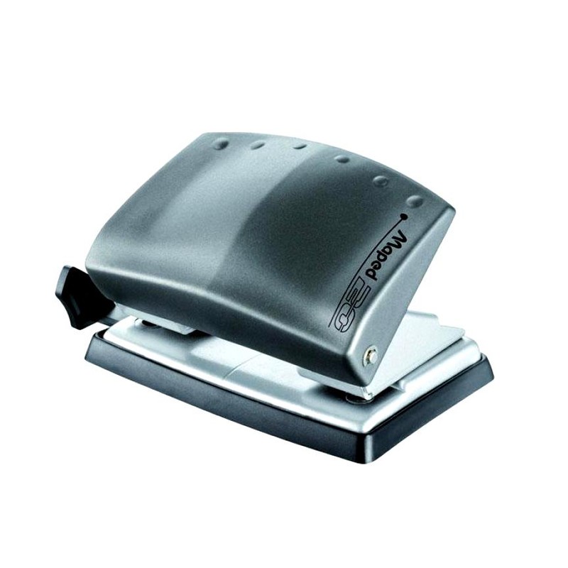 Современный офисный дырокол Maped Start является надежным помощником дома и на работе. Данная модель способна пробить одним нажатием 25 листов бумаги плотностью 80 г/кв.м. Дырокол перфорирует 2 отверстия, диаметр которых составляет 5.5 мм, они находятся друг от друга на расстоянии 8 см. Конструкция модели оснащена контейнером для сбора конфетти и линейкой, деления которой помогают фиксировать бумагу на нужном уровне. Корпус дырокола изготовлен из металла черного цвета с серебристым отливом.