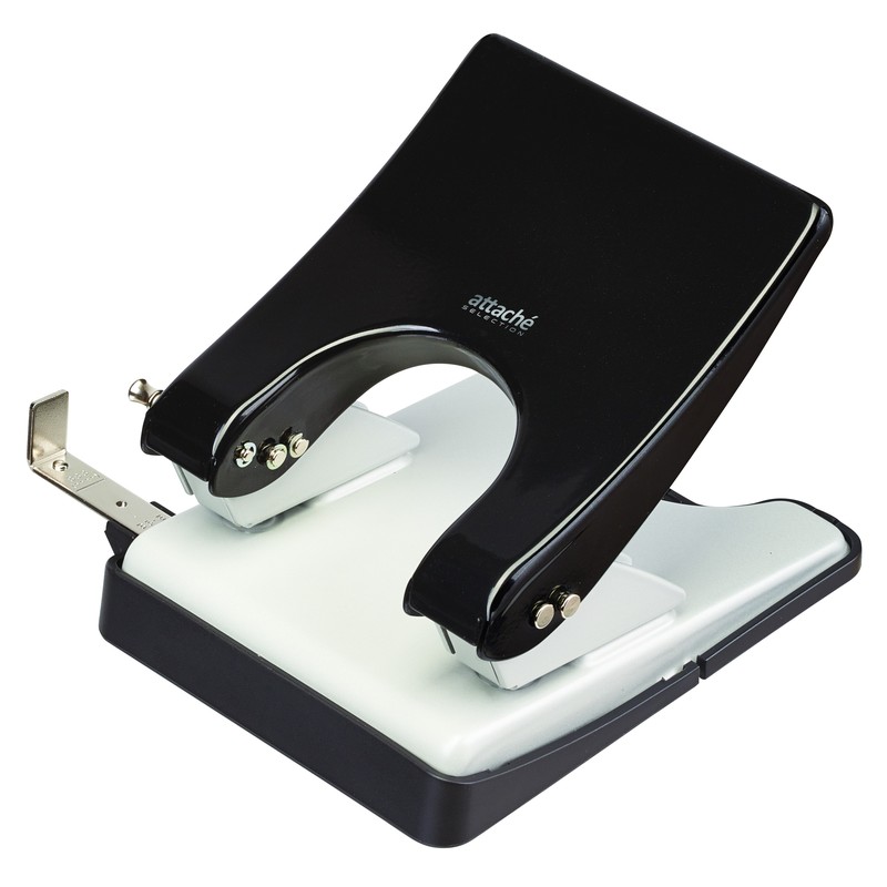 Дырокол Attache Selection stingray эргономичной формы с технологией Power assisted позволяет экономить усилия до 50%. Работает с документами толщиной до 30 листов плотностью 80 г/кв.м. Дырокол пробивает два отверстия диаметром 6 мм, расстояние между отверстиями — 80 мм. Удобный контейнер легко открывается и закрывается, исключая рассыпание конфетти. Металлическая линейка с пятью форматами позволяет зафиксировать бумагу на нужном расстоянии. Дырокол выполнен в металлическом корпусе черного цвета. Блокиратор для хранения дырокола в сложенном состоянии позволяет экономить место на рабочем столе.