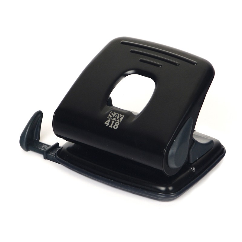 Стильный компактный дырокол Sax ежедневно имеет дело с бумагами. Данная модель способна одновременно пробить 2 отверстия по 5.5 мм через 30 листов средней плотности. Между проделанными отверстиями расстояние составляет 8 см. Удобная конструкция дырокола не просыпает конфетти из специального контейнера, а линейка помогает закреплять на определенном расстоянии бумагу форматов А4, А5, А6 и 888. Корпус дырокола сделан из металла черного цвета.