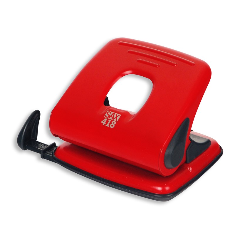 Стильный компактный дырокол Sax ежедневно имеет дело с бумагами. Данная модель способна одновременно пробить 2 отверстия по 5.5 мм через 30 листов средней плотности. Между проделанными отверстиями расстояние составляет 8 см. Удобная конструкция дырокола не просыпает конфетти из специального контейнера, а линейка помогает закреплять на определенном расстоянии бумагу форматов А4, А5, А6 и 888. Корпус дырокола сделан из металла красного цвета.