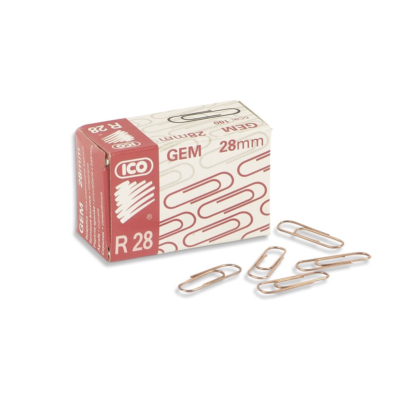Скрепки необходимы для офисной работы с любыми видами бумаг. Скрепки марки ICO сделаны из металла, покрыты слоем меди. Аккуратная закругленная форма повышает их прочность и продлевает срок эксплуатации. Скрепки надежно и плотно скрепляют необходимые документы, не оставляя на них следов и царапин. Данные скрепки выпускаются в картонной упаковке по 100 штук, размер каждой — 28 мм.