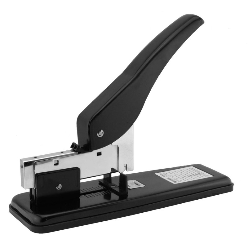 Очень мощный профессиональный степлер черного цвета одновременно соединяет листы в количестве до 210 шт. Глубина закладывание листов варьирует в диапазоне от 7 до 80 мм. Сшивание производится закрытым способом. Благодаря ударопрочному пластику, из которого изготовлен корпус, степлер не оставляет никаких следов и царапин на рабочей поверхности. Надежно фиксируется и не скользит в процессе работы. Скобы, загружаемые в устройство горизонтально, могут иметь различные размеры N23/6, 23/8, 23/10, 23/13, 23/15, 23/17, 23/20, 23/23. Работа степлера бесшумна