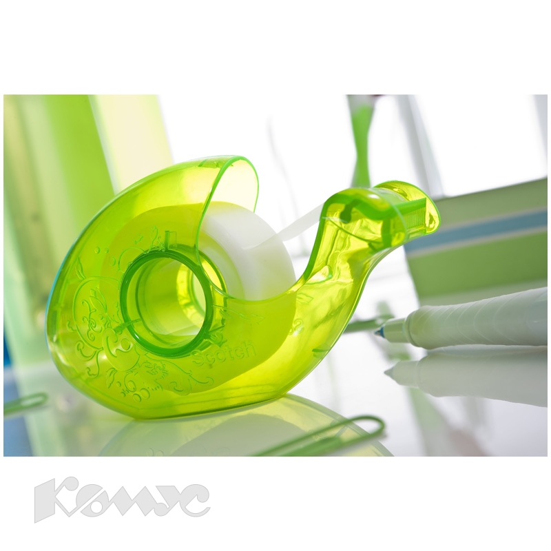 Яркий и компактный диспенсер для канцелярских клейких лент Scotch шириной до 19 мм и длиной до 25 м.