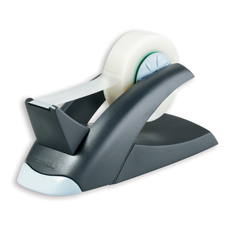 Диспенсер для клейкой ленты Durable имеет специальные противоскользящие ножки, благодаря чему его легко закрепить на любой поверхности. Диспенсер подходит для использования клейких лент метражом до 33 м, поставляется в комплекте с матовой клейкой лентой, на которой можно писать, обеспечивает простую и быструю замену ролика.