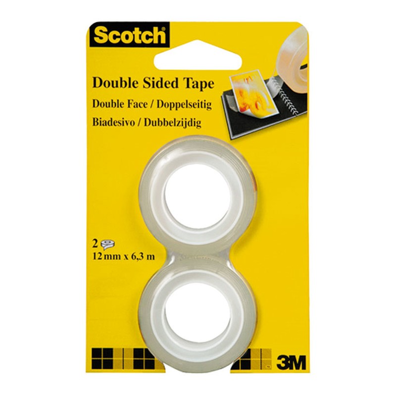 | Клейкая лента канцелярская 3M SCOTCH 136R2 12х6,3 двусторонняя 2 шт/бл |