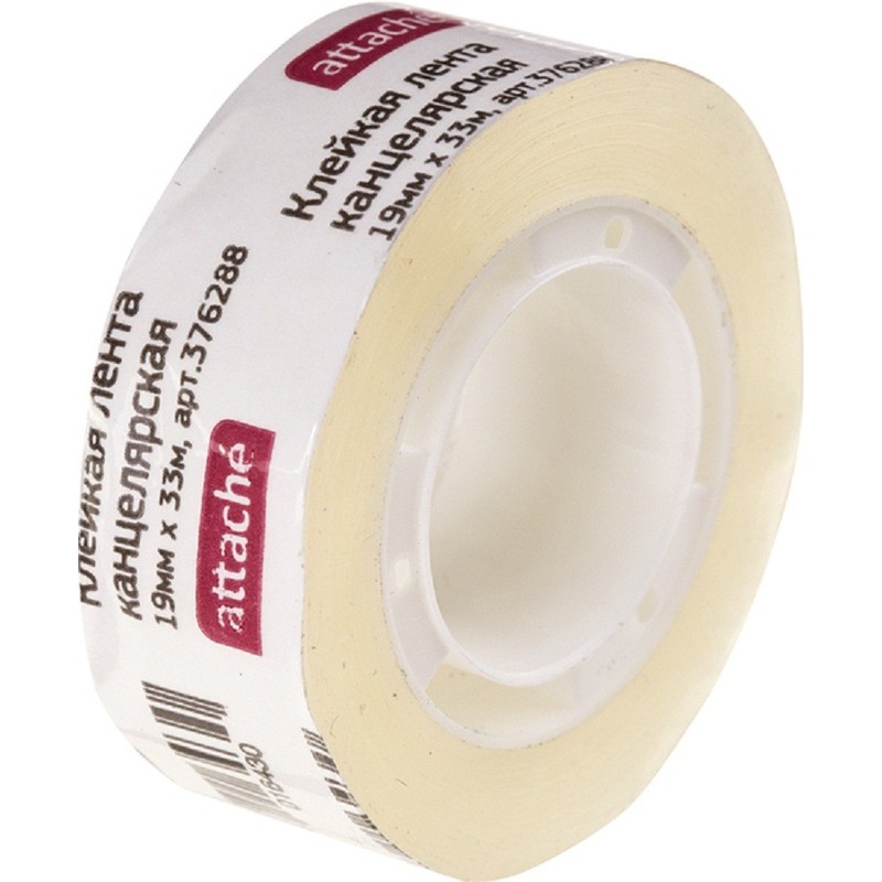 Клейкая лента Attache применяется в офисах, школах, банках и домашних условиях. Лента прозрачная, поэтому она незаметно склеивает деньги, страницы, фотографии и другие изделия из бумаги и картона. На ленте можно оставлять надписи. Низкий уровень плотности в 35 мкм позволяет ленту не только отрезать ножницами, но и рвать руками. Каждый рулон имеет ширину 19 мм, длина ленты — 33 м.
